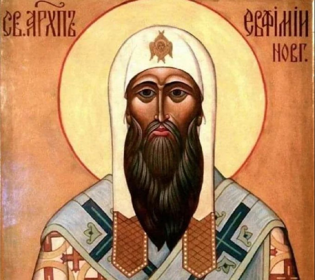В 1429 году Евфимия избрали архиепископом Новгородским. За годы служения он прославился добродетельной жизнью и усердными трудами: восстанавливал храмы после страшных пожаров 1431 и 1442 годов, заботился о переписке церковных книг, богато украсил Софийский собор. Скончался святитель 11 марта (по старому стилю) 1458 года в Лисицком монастыре. На его теле после смерти нашли железные вериги, которые приносили исцеление. Мощи святителя почивают в Николо-Вяжищском монастыре под Новгородом. Канонизирован Евфимий был на втором Макарьевском соборе в 1549 году. Православные верующие молятся святому о здравии, о помощи в трудах и укреплении в вере.