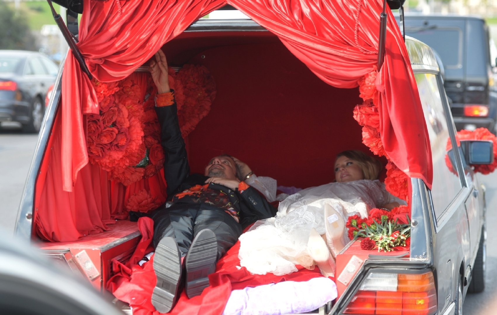 Свадьба Ксении Собчак и Константина Богомолова, состоявшаяся в символичную пятницу 13 сентября 2019 года, превратилась в масштабный перформанс, который обсуждали еще несколько месяцев. Главным шоком для публики стал выбор транспорта: к дверям ЗАГСа влюбленные подкатили на настоящем черном катафалке с циничной надписью «Пока смерть не разлучит нас». Такой эпатажный жест позже обернулся для пары вниманием со стороны ГИБДД и штрафом за нарушение правил перевозки пассажиров.