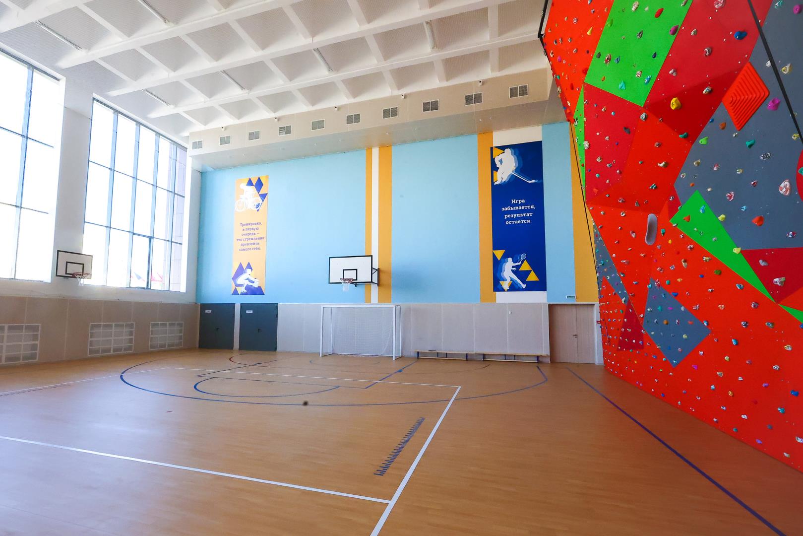 Воробьёв проверил новую пристройку со скалодромом к школе в Мытищах
