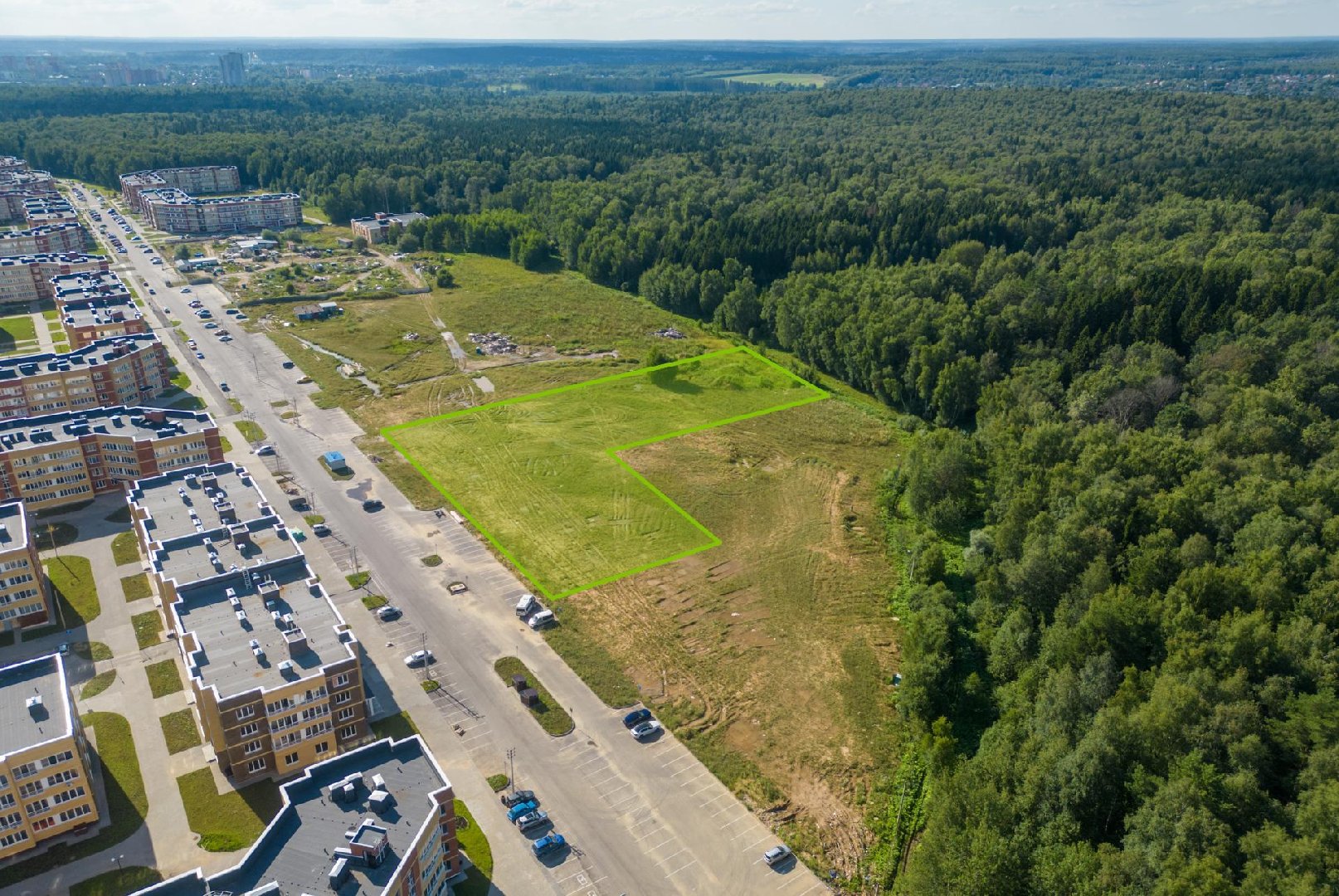 На западе Подмосковья, в деревне Высоково муниципального округа Истра, ДОМ.РФ выставил на торги участок площадью 0,88 га. Территория расположена в жилой застройке, там есть вся необходимая инфраструктура. До улицы Центральной — около 630 метров, до ЦКАД — менее 1,86 километра. В пешей доступности — остановка общественного транспорта «ЖК Малая Истра».
