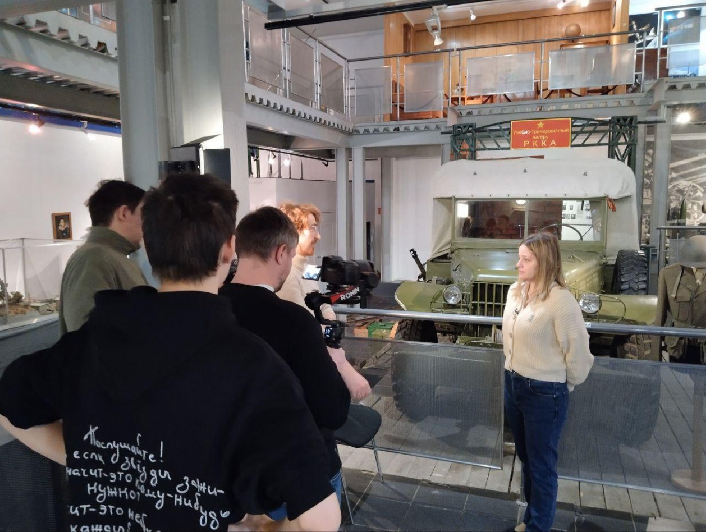 Съёмочная группа начала работу в отделе «Новейшая история города». Заведующая ТИЦ Марина Костюнина рассказала о ключевых событиях истории Калининграда–Королёва и показала редкие экспонаты из музейной коллекции.