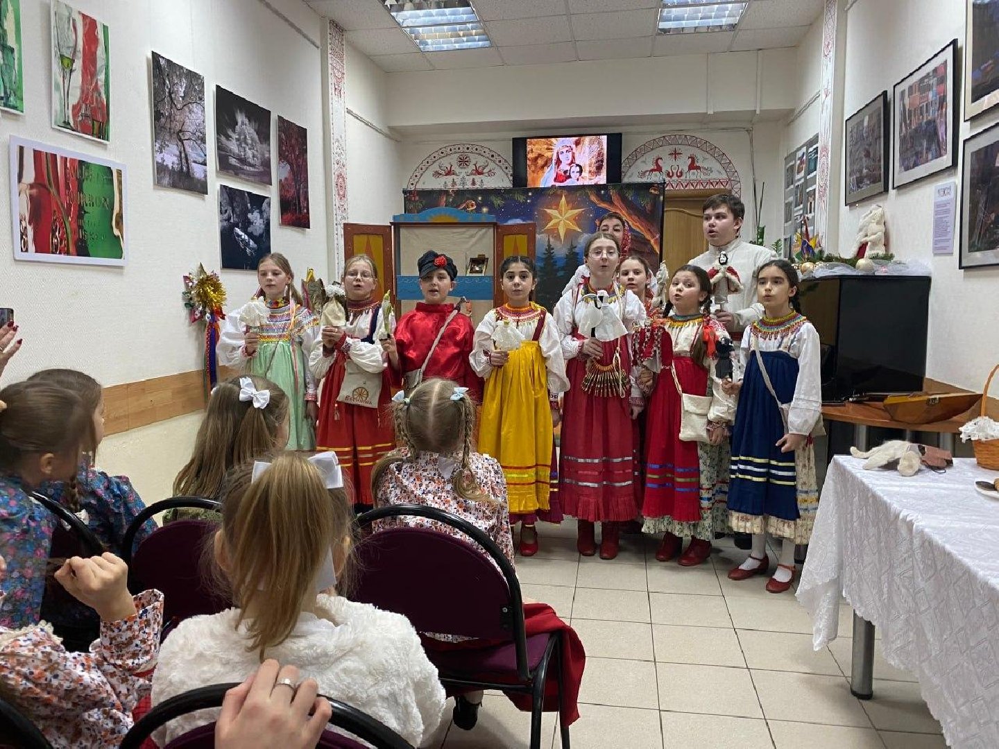 «Вертепное действие очень древнее. Мы нашли тексты, песни и разучиваем их с детьми. Они погружаются в историю, это очень интересно. Ситаю, что дети должны знать наши корни, традиции, сказки, обряды, предания, легенды, и, конечно, всё, что связано с Рождеством», – отметила руководитель ансамбль фольклорной музыки Елена Оленева.«Веснянка» существует уже 25 лет на базе школы №8 города Пушкино. В ансамбле детей знакомят с традициями русского народа. На празднике коллектив пел народные песни и частушки, играл в старинные славянские игры, колядовал. Завершением встречи стало чаепитие.