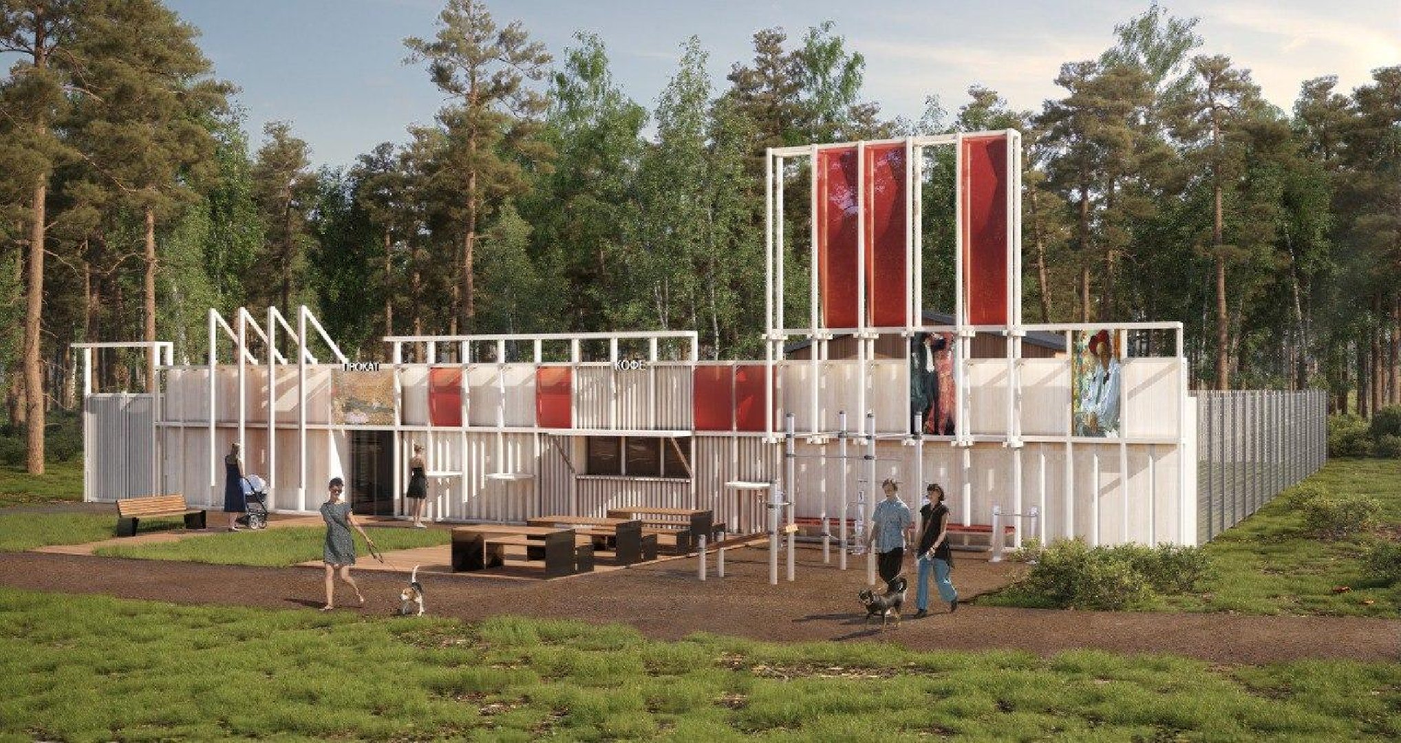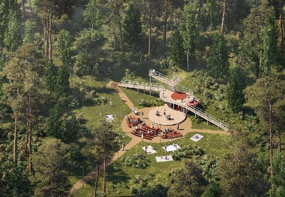 Проект включает создание удобной инфраструктуры для отдыха и спорта. Планируется проложить дорожно-тропиночную сеть, оборудовать игровую площадку для детей. Для любителей спорта разместят площадки с современным оборудованием, в том числе для воркаута. Предусмотрено также строительство павильона проката.