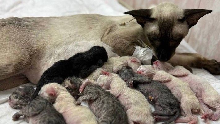 Подмосковные ветеринары спасли кошку и девять новорождённых котят