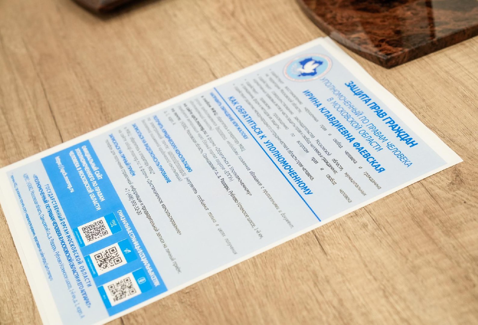 Попасть на приём к Фаевской можно через МФЦ, с использованием в формы «Обратиться к уполномоченному» на сайте омбудсмена Подмосковья или направить письмо по адресу: 143082, Московская область, Одинцовский городской округ, деревня Раздоры, Рублёво-Успенское шоссе, 1-й км, д. 1, корп. А.