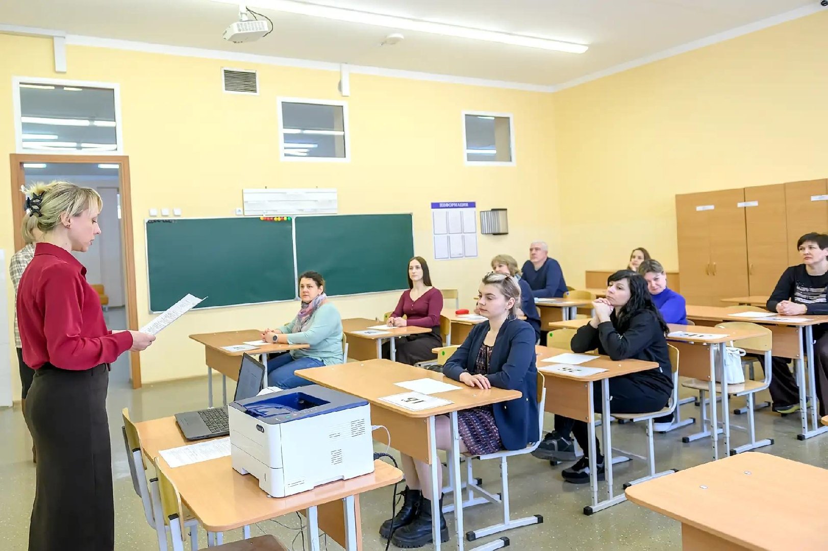 Для взрослых организовали экскурсию по пункту проведения экзамена (ППЭ). Им продемонстрировали процедуру регистрации, работу зоны металлодетектора, расположение аудиторий и штаба. После инструктажа участники получили контрольно-измерительные материалы и выполнили задания, после чего разобрали решения с педагогами.