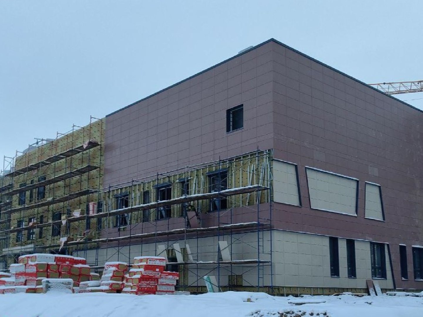 «На площадке задействовано 65 рабочих и 4 единицы техники. Выполняется монтаж фасадных конструкций, окон и витражей, кровельные работы. Работы в графике», — уточнили в ведомстве.