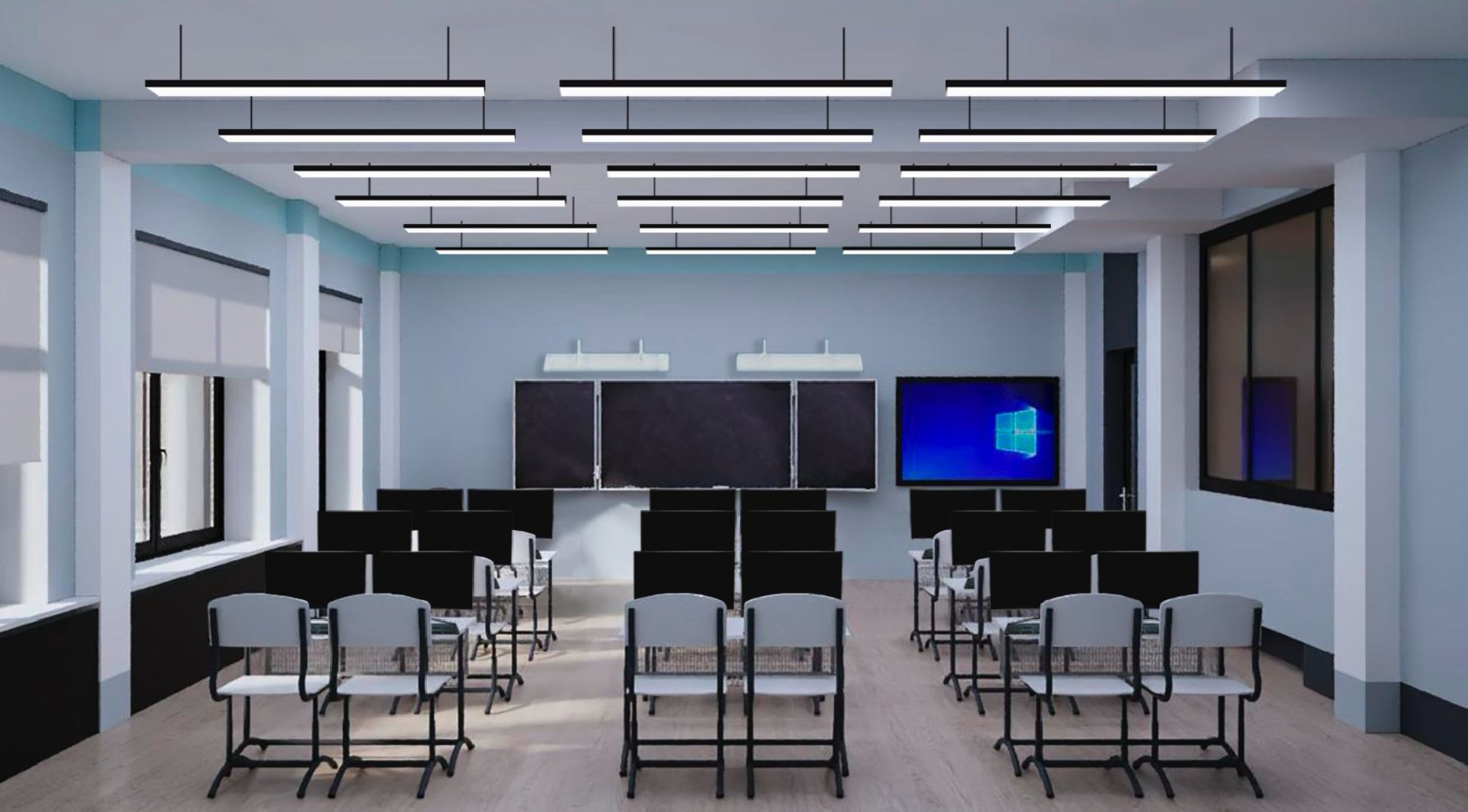 Согласно проекту, пристройка будет трехэтажной и Г-образной формы. Ее соединят с существующим зданием школы переходом на уровне второго этажа.