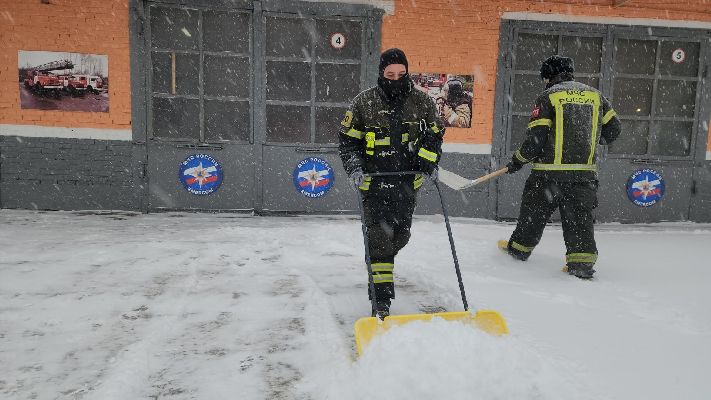 В Лобне пожарные расчистили снег перед своей частью