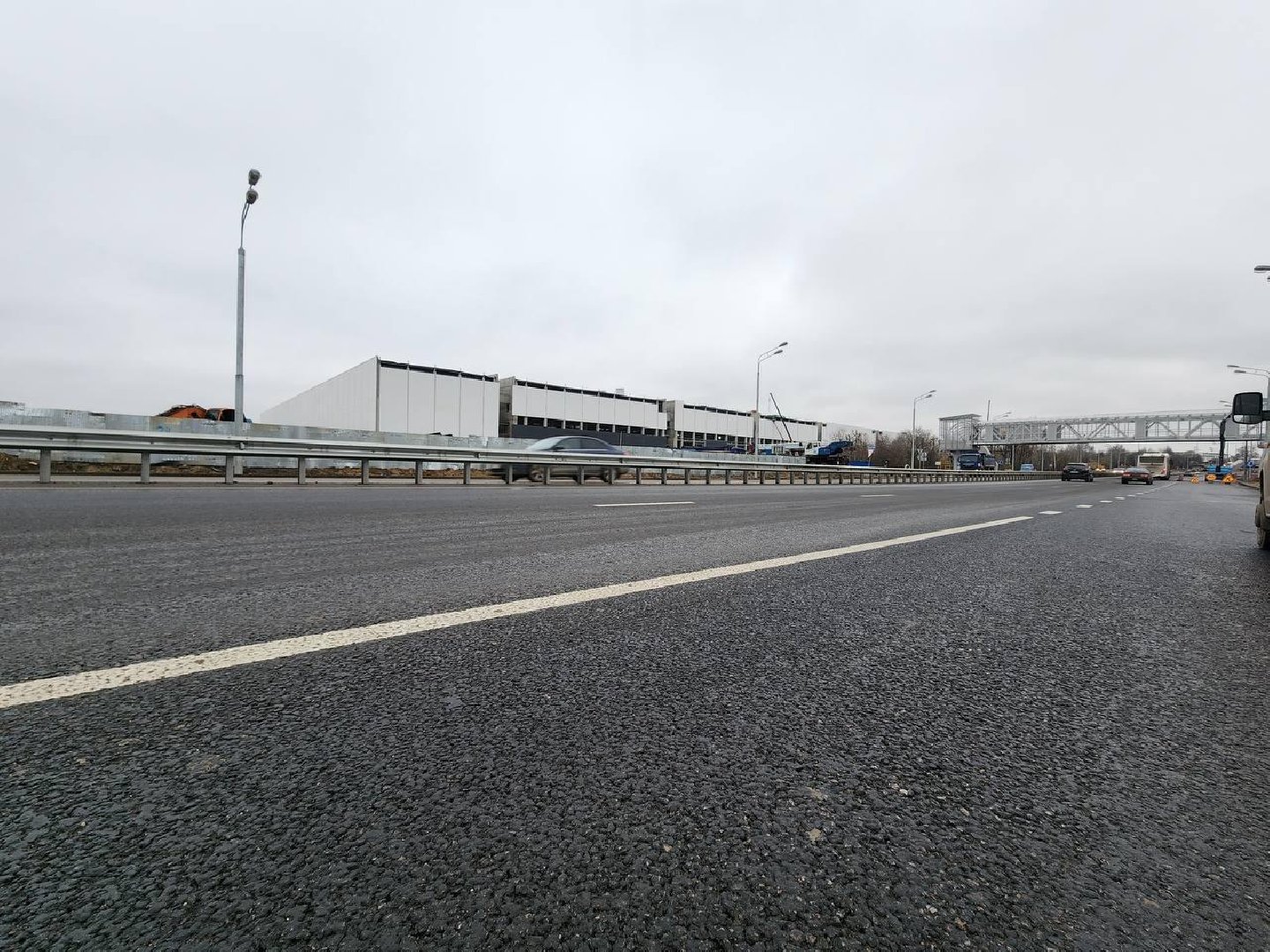 Параллельно ведут устройство двухполосного дублёра, монтаж шумозащитных экранов и строительство тротуаров. В ближайшее время обновят остановки общественного транспорта, а для безопасности дорожного движения на всём протяжении участка установят барьерное ограждение.