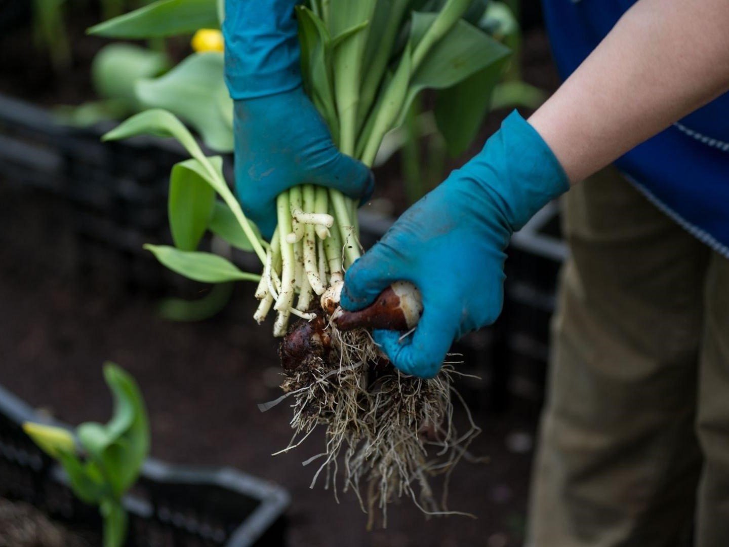 Посадку проводят в октябре, когда температура почвы держится на уровне +8…+10°C — именно в этот период формируются корни и зачатки будущих бутонов.