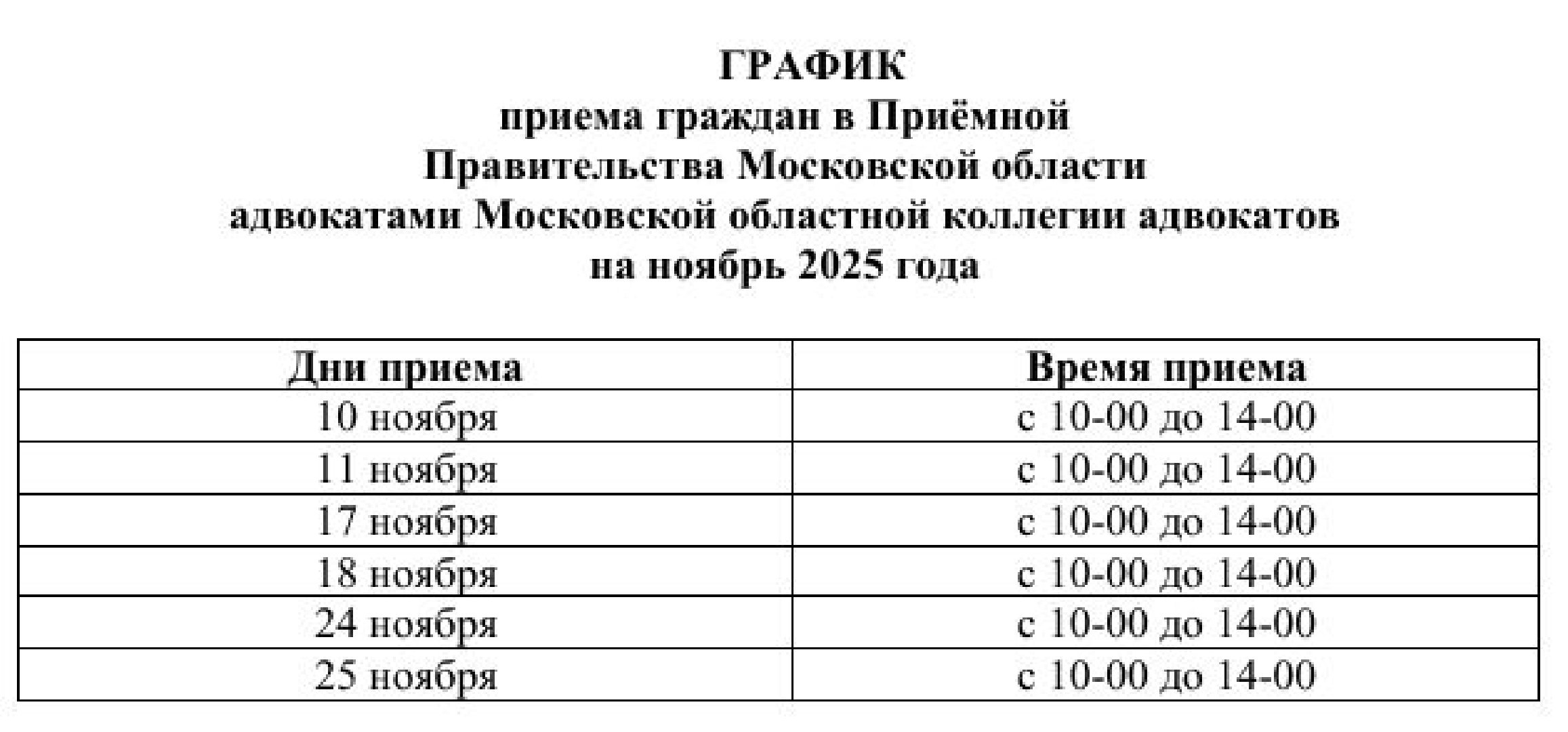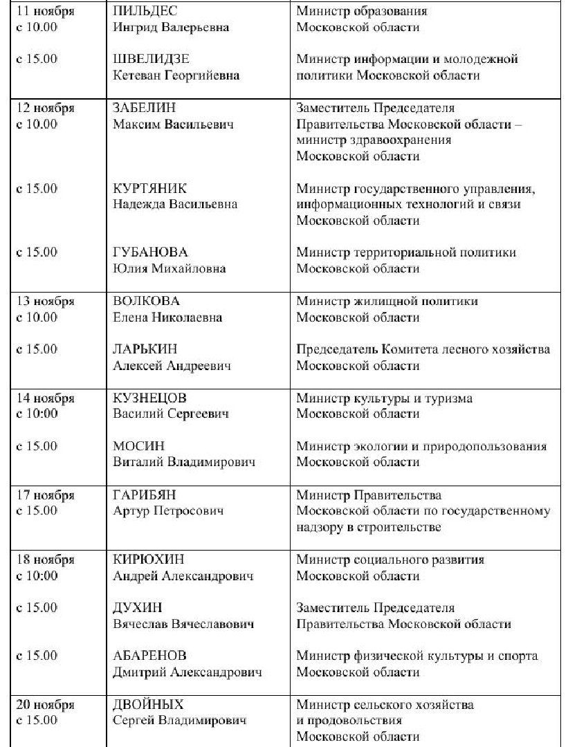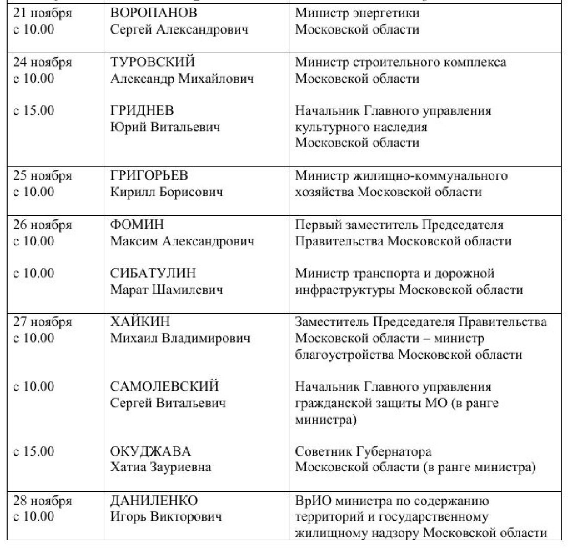 В Подмосковье утвердили ноябрьский график приёма населения властями региона