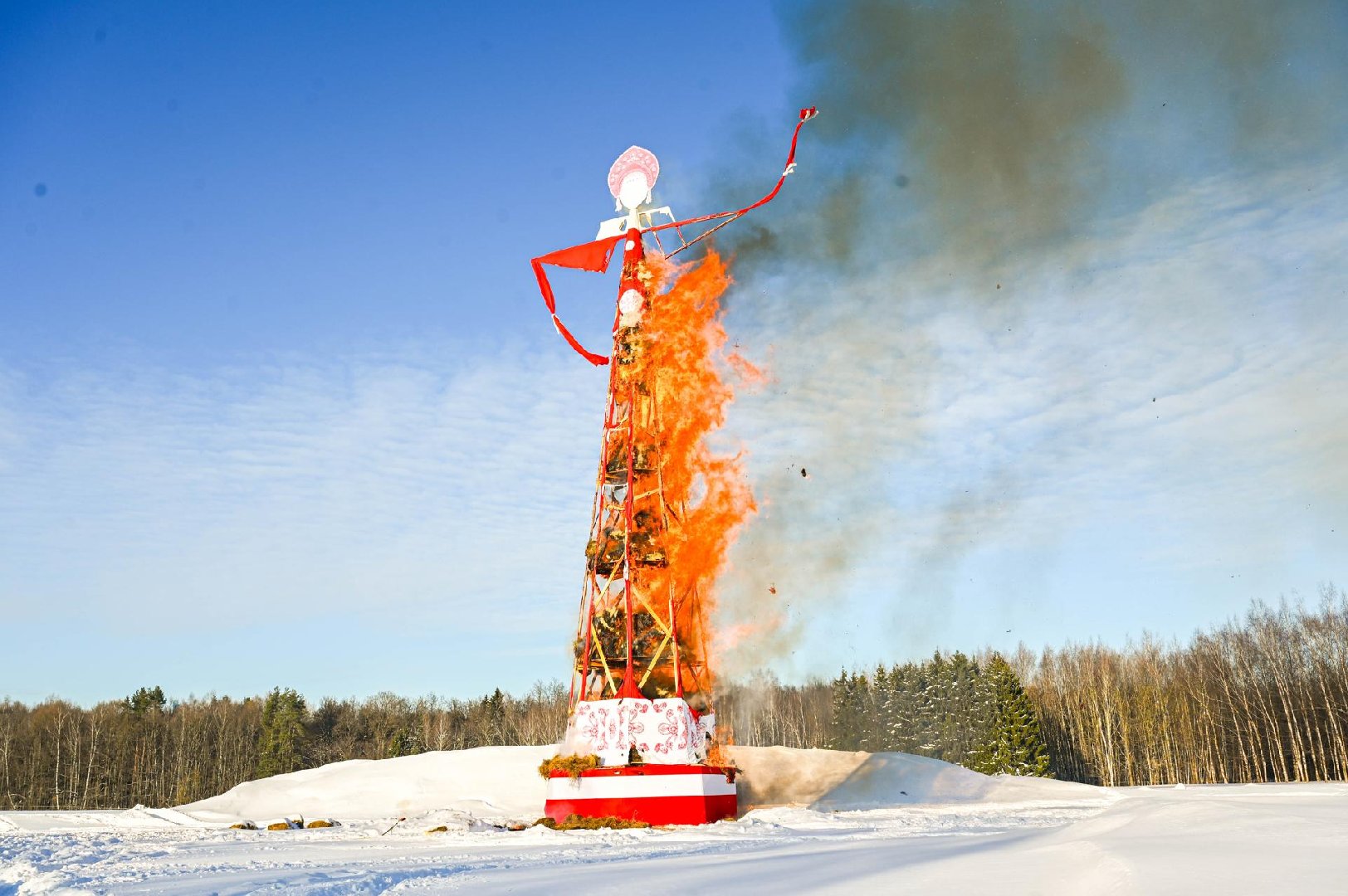 Центральным событием праздника стало сожжение самого большого в стране масленичного чучела. Его высота составила 25,2 метра, то есть выше пятиэтажного дома.