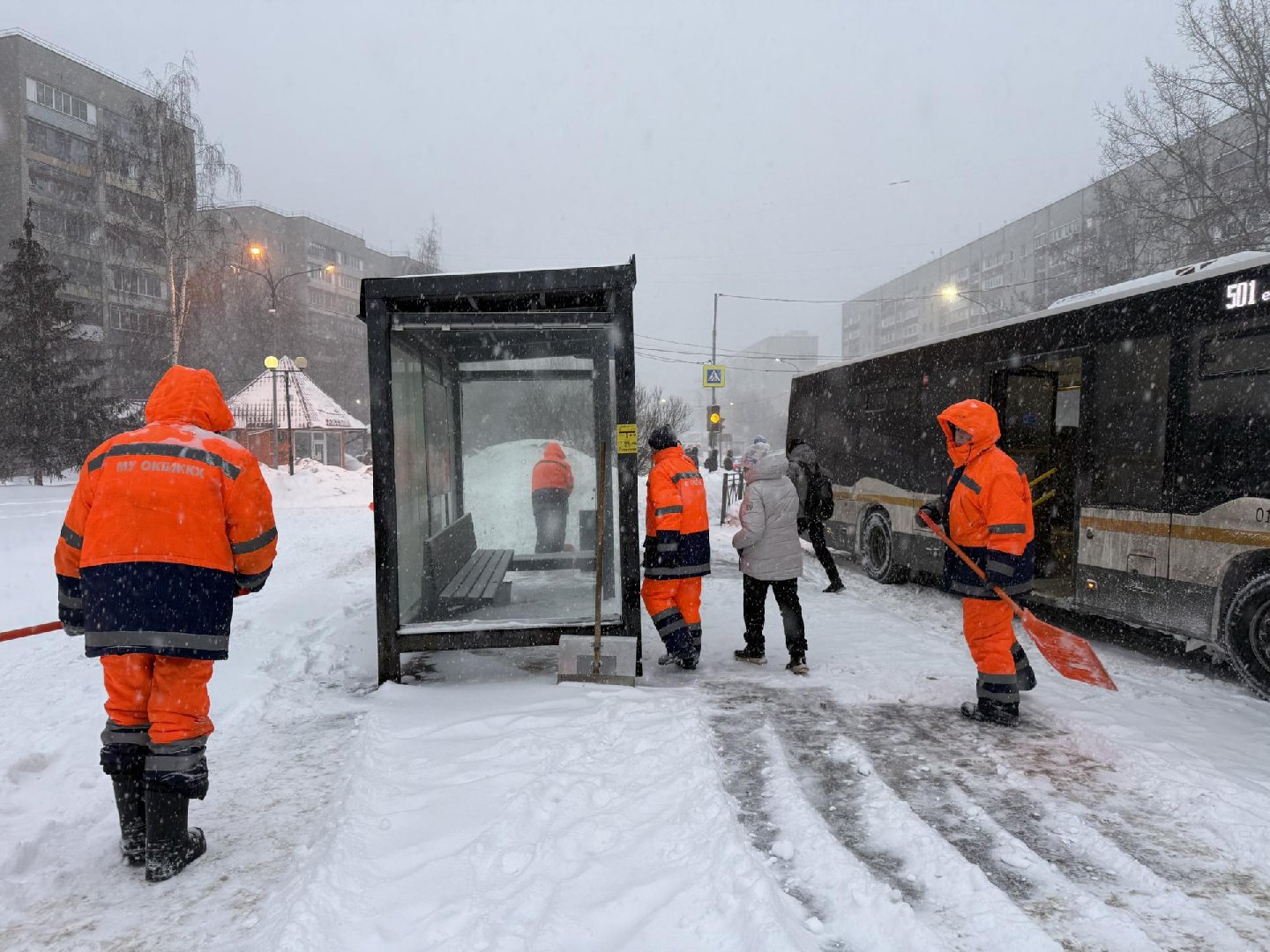 В подмосковных Люберцах с 7 утра расчищают улицы после снегопада