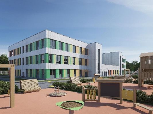 В составе комплекса откроют школу на 500 мест и детский сад для 120 малышей. В учебных кабинетах установят интерактивные доски, эргономичную мебель и большие окна, чтобы создать комфортную среду для занятий.
