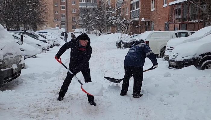 Волонтёры расчистили снег у Совета ветеранов в Домодедове