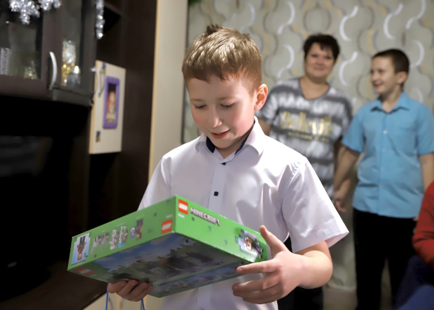 У Сережи есть младший брат – девятилетний Дима. Его тоже не оставили без подарка – передали от губернатора конструктор. Кроме того, семье привезли корзину с угощениями к новогоднему столу.