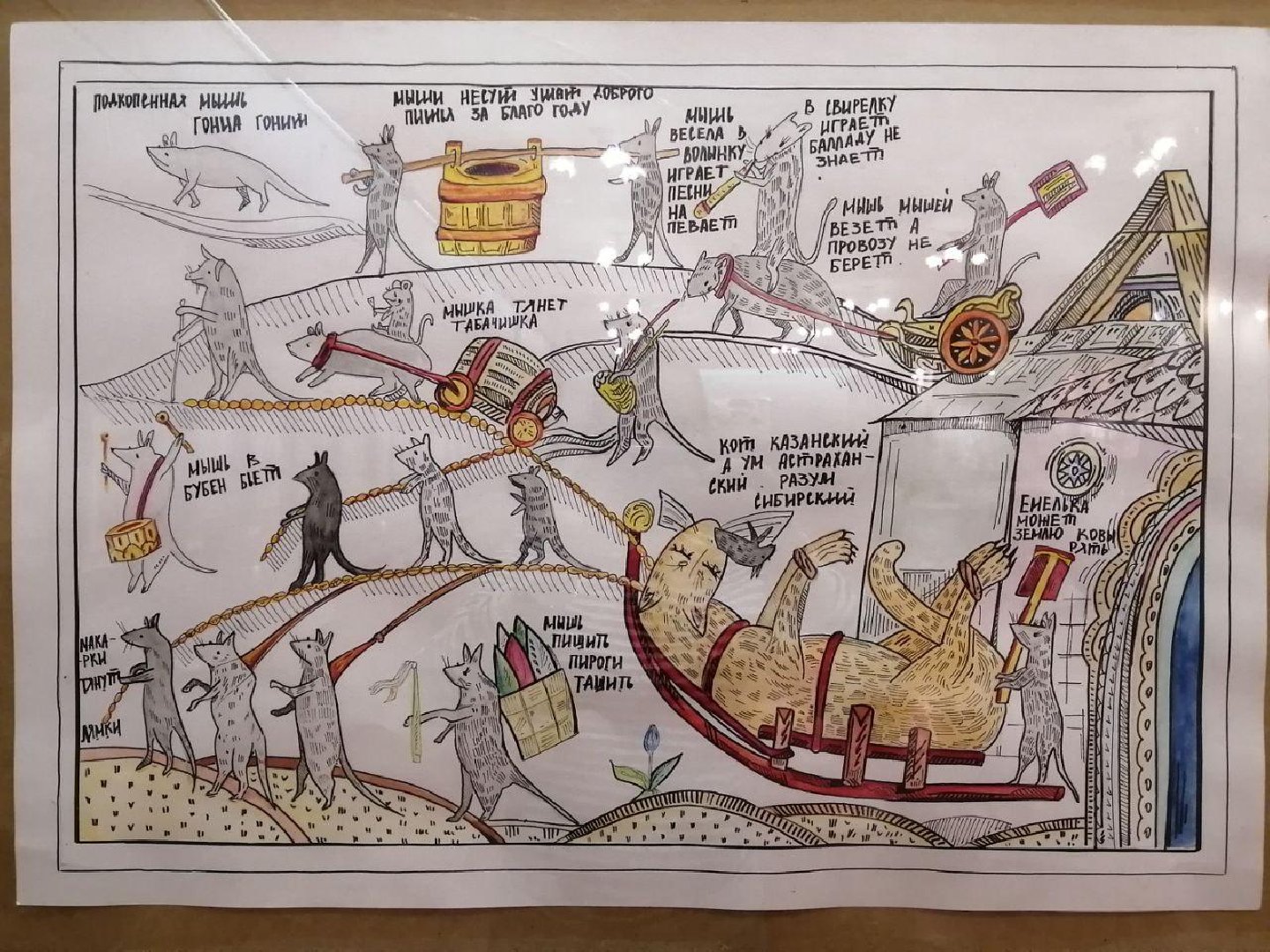 «Современные искусствоведы рассматривают лубок как самобытную часть культурного наследия и даже видят в нём предшественника современных комиксов. На выставке представлены три типа работ: копии с оригинального старинного лубка, копии работающих в этом стиле современных художников, а также авторские работы с самостоятельным осмыслением поговорок», – рассказали в администрации.