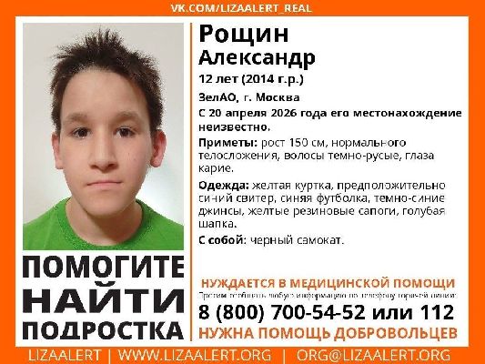 В Подмосковье пропал 12-летний мальчик с проблемами со здоровьем