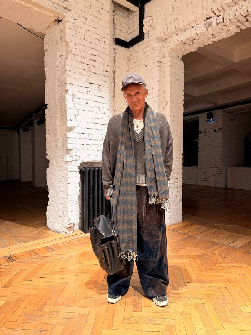 На фотографии 65-летний Меньшиков выглядит элегантно. Он выбрал модные широкие брюки, дополнил их брендовым пуловером и несколькими украшениями.
