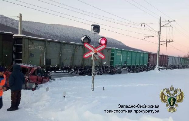 В Кемеровской области грузовой поезд протаранил легковушку на переезде