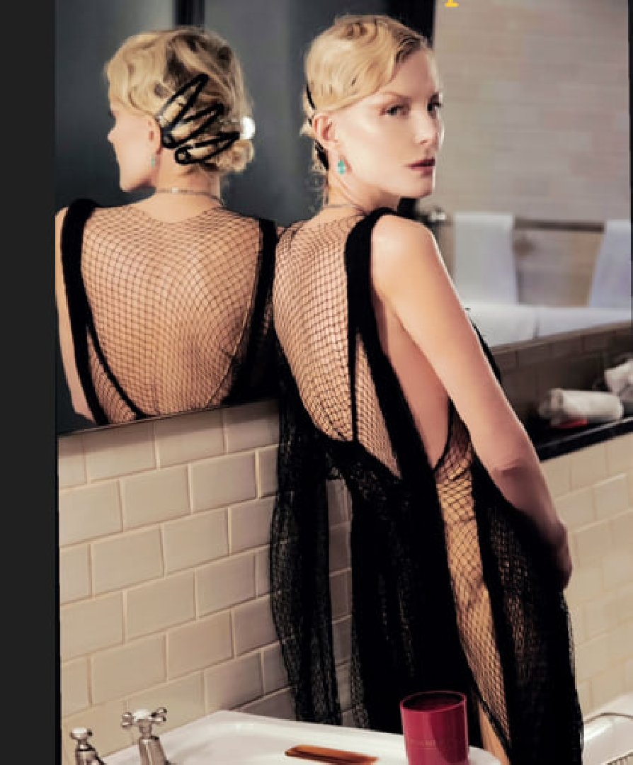 На фотографии Литвинова позирует у зеркала в черном платье с сетчатой текстурой, которое открывает ее спину. Волосы актрисы уложены в ретро-стиле и закреплены крупными заколками, а вот привычная красная помада на губах на этот раз отсутствует.