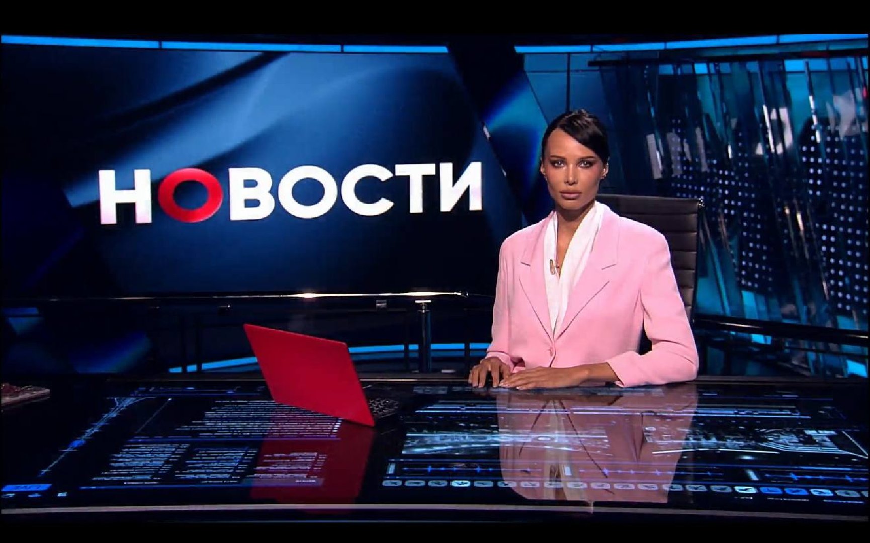 Бывшая возлюбленная Тимати прикрепила снимок, сделанный во время имитации прямого эфира в телевизионной студии. На нем манекенщица запечатлена сидящей за столом в розовом пиджаке и с собранными в пучок волосами.