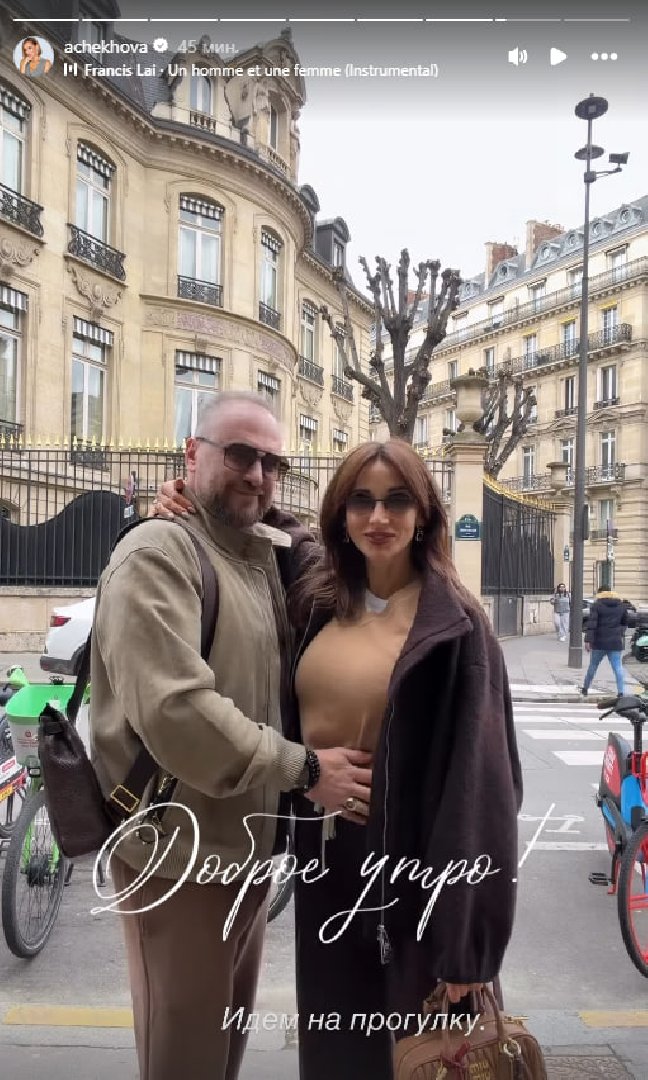 Знаменитость поделилась серией видео из поездки и призналась, что этот город связывается у нее с важными воспоминаниями. На одном из роликов супруги снялись в аэропорту — Чехова в шутку спрашивает мужа: «Саша, ты мне еще одно предложение хочешь сделать?» В другом видео она показывает номер в отеле, где, по ее словам, согласилась выйти за Златопольского. С балкона открывается вид на шпиль Эйфелевой башни и центр Парижа.