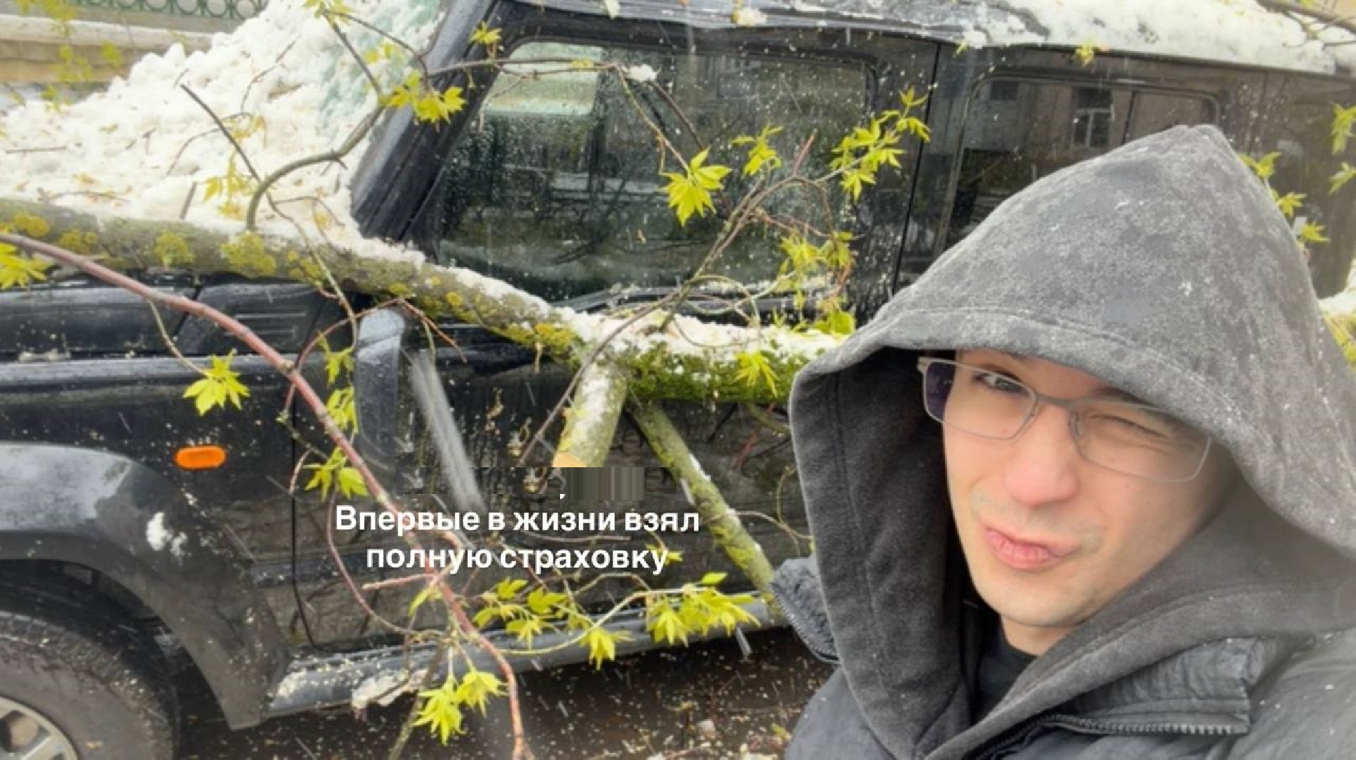 В Москве дерево упало на новый автомобиль рэпера Slava Marlow во время снегопада