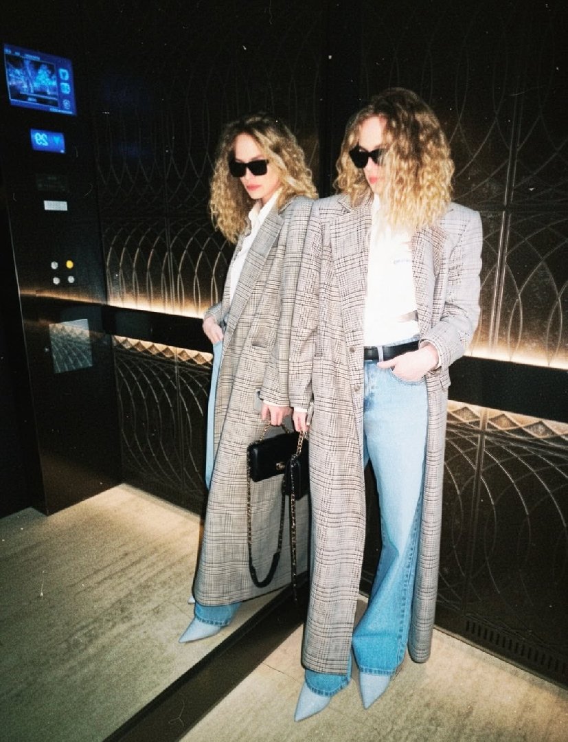 На свежих снимках артистка запечатлена в голубых джинсах, белой рубашке, длинном пальто и солнцезащитных очках. Вместо привычных гладких волос она выбрала кудри.