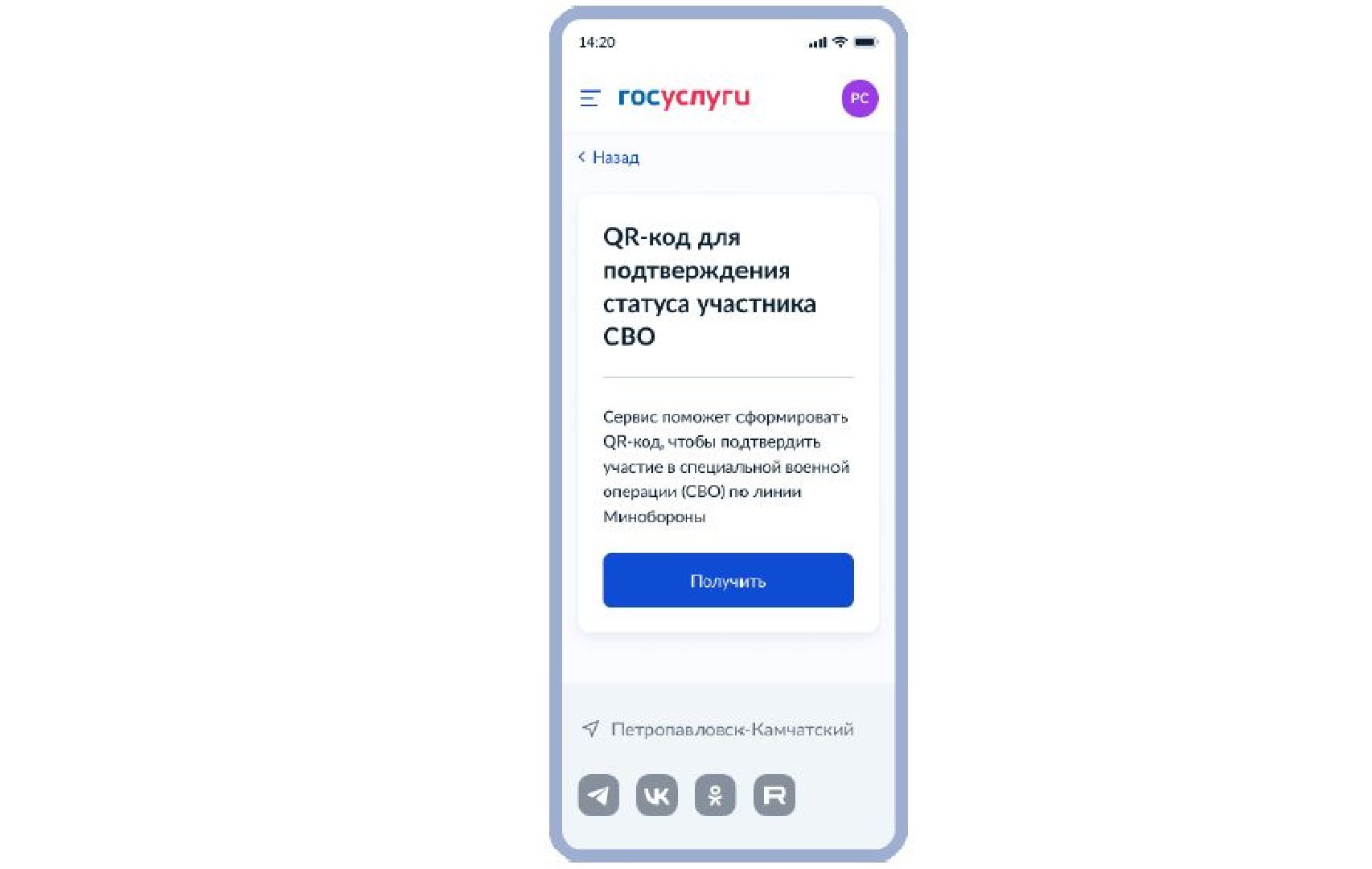 Сервис сделает запрос к витрине Минобороны. Если данные о пользователе найдутся в витрине, будет сформирован QR-код со ссылкой вида, который участник СВО сможет предъявить в приложении «Госуслуги» или заранее сделав скриншот в режиме оффлайн на экране мобильного устройства.