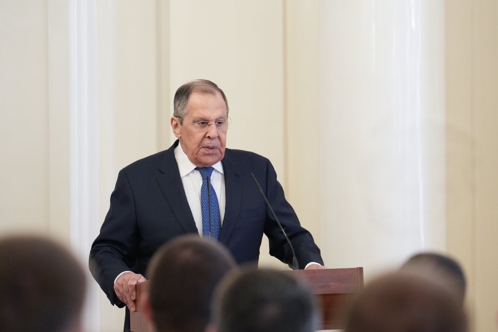 «Сегодня мы поздравляем с успешным завершением обучения 29 участников СВО из 16 регионов. Искренне рад приветствовать наших героев. Как не раз подчеркивал президент Путин, в ваших руках – будущее России. На поле боя вы проявили верность Отечеству и долгу, готовность жертвовать собой ради ближнего, Родины, показали смелость и решимость, беспримерную силу духа и волю к победе. Теперь ваш опыт вместе с приобретёнными в МГИМО знаниями предстоит применить в интересах развития нашей страны, улучшения жизни России. И я не сомневаюсь, что вы добьётесь результатов и на гражданском поприще», – сказал Лавров.